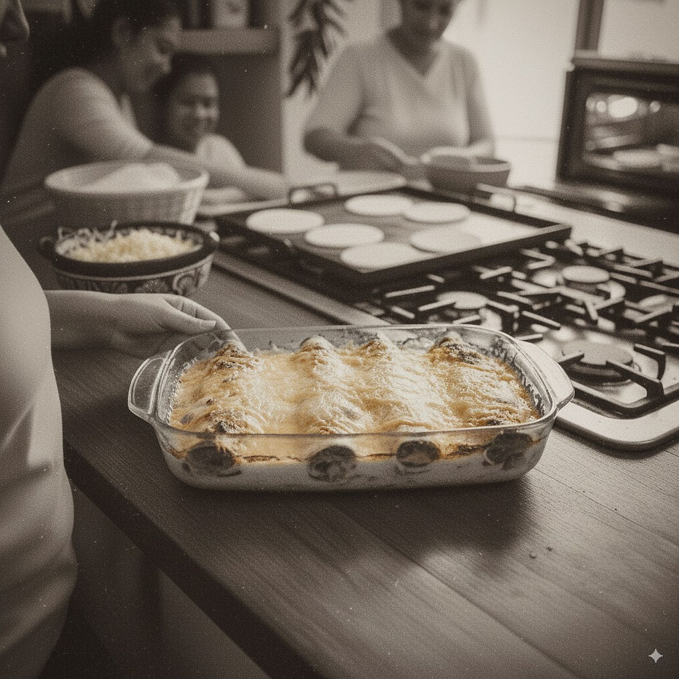 ✨ Tradition Tip: Serve enchiladas alongside arroz rojo (Mexican red rice) and frijoles refritos (refried beans)—staples of family tables that add comfort and balance to the meal.